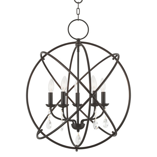 Aria Collection 5-Light Chandelier in English Bronze with Orbiting Rings and Teardrop Crystals Livex Lighting 40905-92