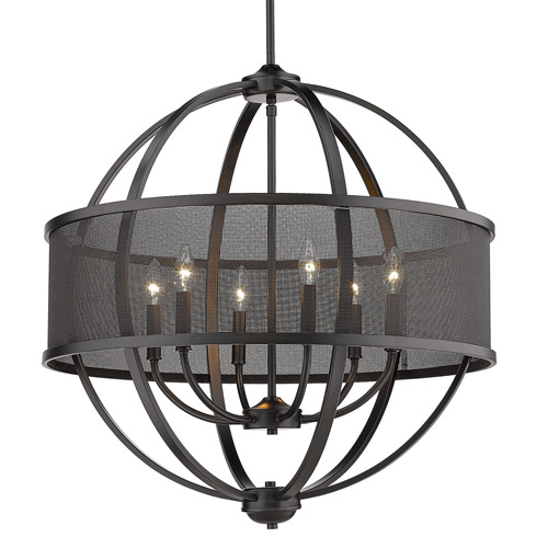 Colson Collection 6-Light Chandelier in Black with Matte Black Mesh Shade Golden 3167-6 BLK-BLK