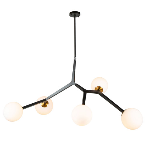 Ravello Collection 5-Light Pendant in Black and Harvest Brass with Circular Opal Glass Shades Artcraft AC10975VB
